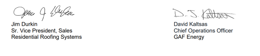 Please contact your local GAF Territory Manager with any questions, and we remain grateful for